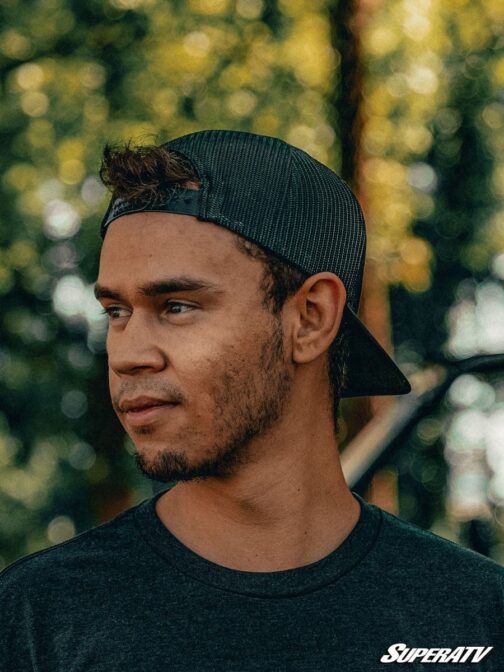 battle-ready gear with SuperATV’s 15th Anniversary black or gray mesh trucker