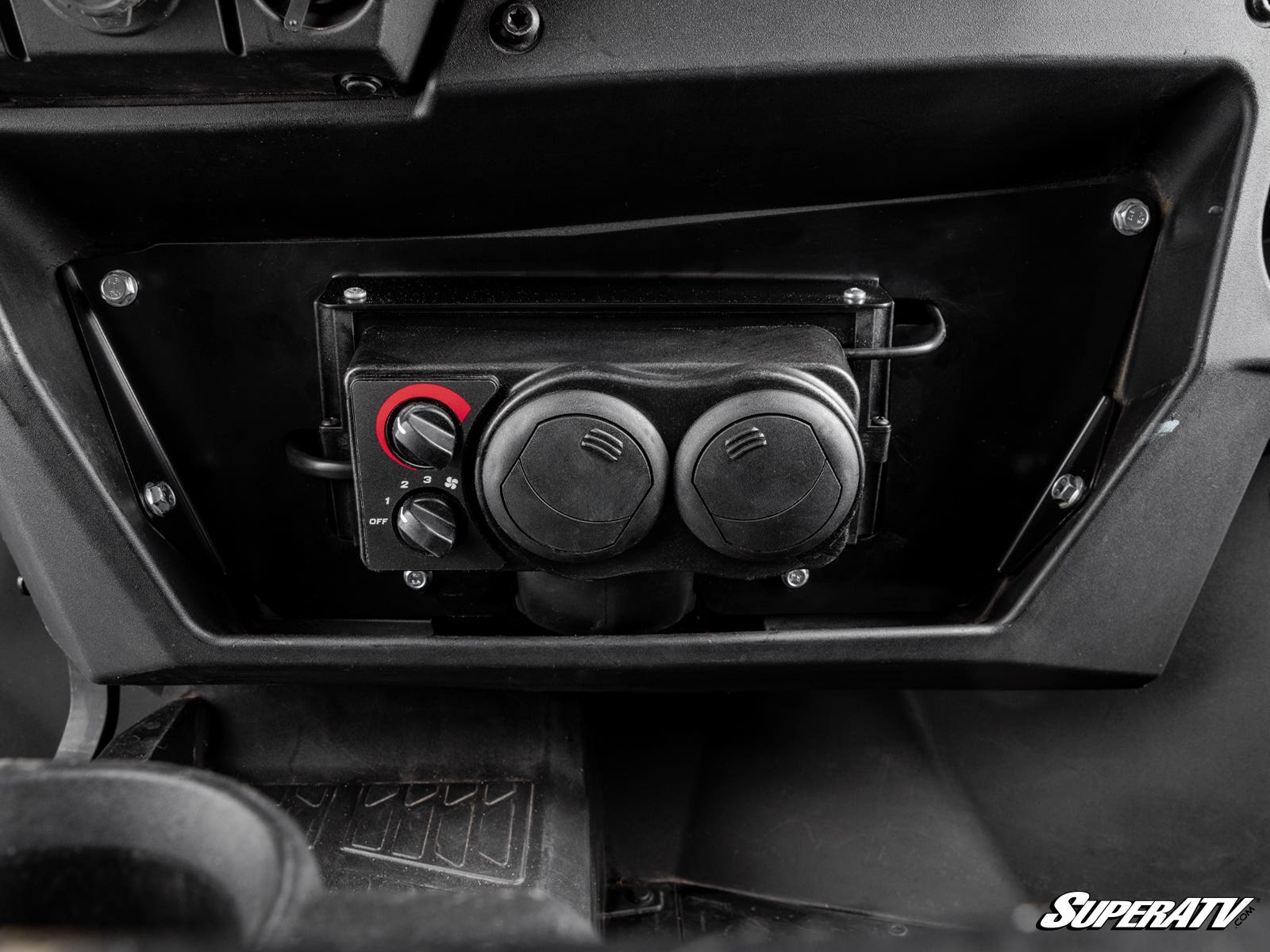 heater mounts under your dash and out of the way for you and your passengers.